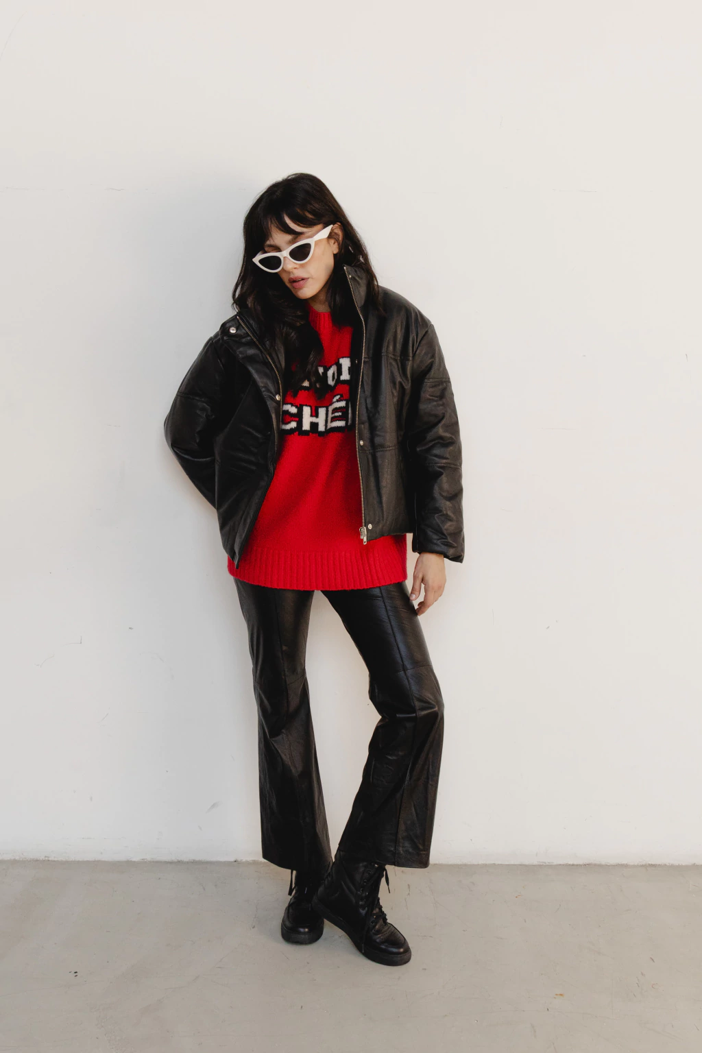 La clásica puffer se reinventa en cuero, fusionando abrigo y estilo en una prenda contemporánea. Su silueta oversized y acolchada brinda confort y personalidad, ideal para looks urbanos con carácter.
